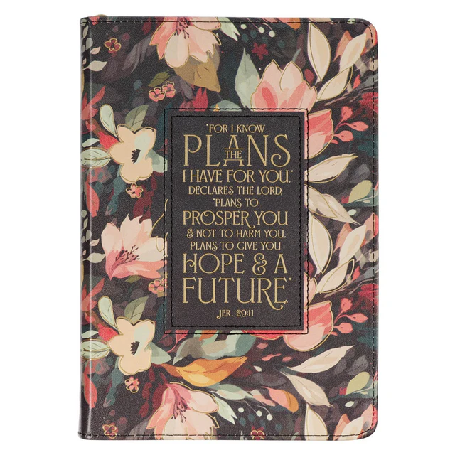 Hope and a Future Midnight Botanical Faux Leather Journal with Zipper Closure – Jeremiah 29:11